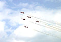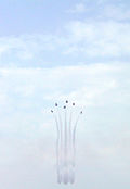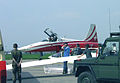Deutsch: Die Internationale Luft- und Raumfahrtausstellung ILA (offizieller Name: Berlin Air Show) in Berlin/ Brandenburg, ist die bedeutendste Fachmesse der Luft-und Raumfahrtindustrie in Deutschland. Sie findet alle zwei Jahre auf dem Südgelände des Flughafens Berlin-Schönefeld statt.